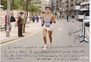 Considero que tuve la suerte de vivir un tiempo en el que nos entregábamos en cuerpo y alma tan solo a cambio de la satisfacción de la superación, de la realización, de la contemplación. Difícil hacer entender, hoy en día, a un atleta del montón, que deberá dejarse en el camino gran parte de su esencia como ser humano, a cambio de nada material… no vivimos tiempos poéticos, sino más bien prosáicos y muy pocos, poquísimos, están dispuestos a entrenar más de seis ó siete sesiones de carrera a la semana para mejorar, tan solo aquellos que obtienen algo material a cambio. Benditos tiempos aquellos en los que el idealismo y la aventura nos hicieron buscar nuestros límites y procuraron un enriquecimiento tanto físico como interior.