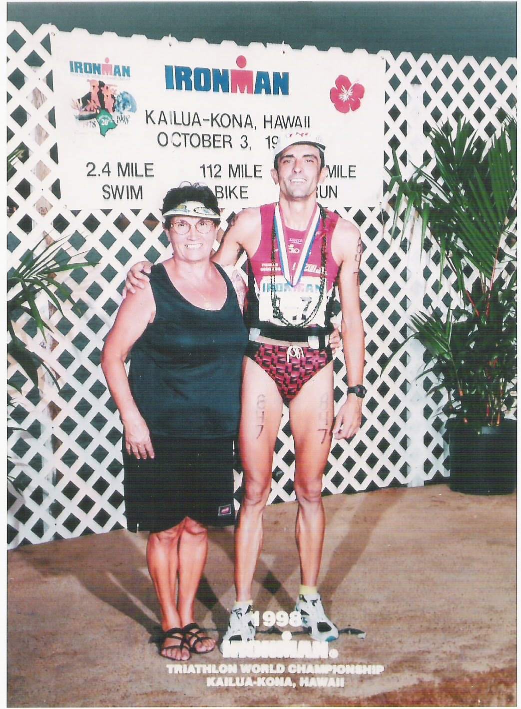 Callejeo por Kona. Hay miles de personas. Paso por un tubo de masa humana ruidosa y miro las banderas que flanquean la meta. Paladeo la atmósfera, veo rostros expectantes, alegres,jubilosos y comienzo casi a llorar. Veo la meta , piso la moqueta «Triatlon World Championship Ironman Hawaii». Cruzo la línea, 10h.30′, puesto 312. Unos brazos de dos hawaiianas me llevan y me colocan el collar de flores. Surgen los recuerdos de la infancia, de la juventud, los años que han pasado hasta llegar aquí.