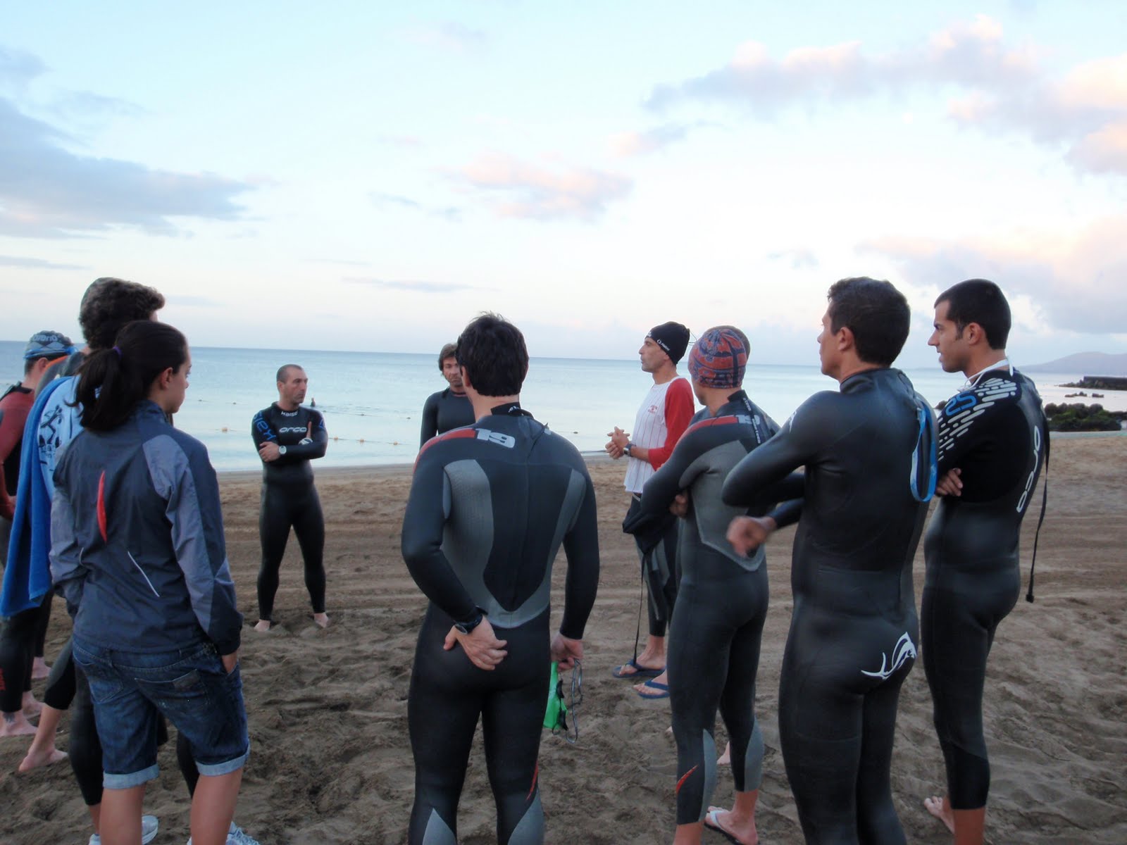 Hoy, primer encuentro «oficial» con mis discípulos en la arena de la Playa Grande, rayando el sol, unas palabras de bienvenida y algunas consignas antes de tirarnos al agua. Tocando un poco el ritmo de prueba en la natación; luego por la tarde, tendríamos la tradicional charla que Carmelo y yo damos a los chicos con todas las recomendaciones y «secretos» de una competición especial, gracias a los años de experiencia , sobre todo la de Carmelo, el español con más camisetas de finisher en el IM de Lanzarote; este año alcanzará su 15ª meta en Puerto del Carmen. Ahí es nada. Toda una vida.