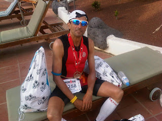 El último día previo a la prueba lo vivimos con calma, mucho relax y tiempo para preparar todo. No podemos decir que nada haya quedado a la improvisación, y seguramente los muchos años de ensayo y error ayudan a ello. Tocamos agua, (cada día que pasa con mejores sensaciones en la, este año, más cálida playa de Puerto del Carmen), pedaleamos una media hora por el recorrido del marathon y terminamos con un trote testimonial. Todo en su sitio.